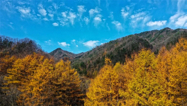 在該縣玉皇山國(guó)家森林公園內(nèi),楓葉似火、杉樹(shù)染金、青松疊翠,一排排挺拔的水杉錯(cuò)落有致地分布在蒼茫的群山之上。