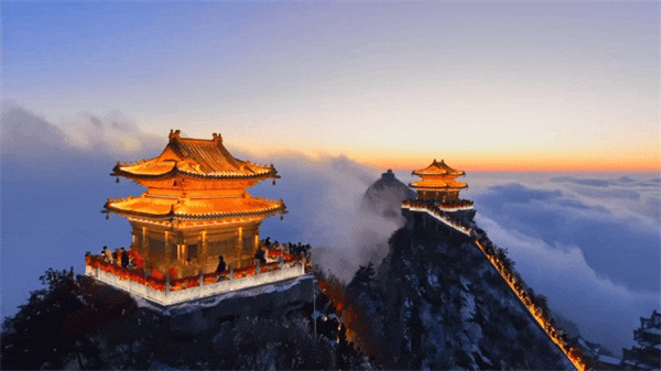 金殿夜景亮燈時間在日落之后,現(xiàn)執(zhí)行:18:00——18:30/凌晨:3:30——4:30