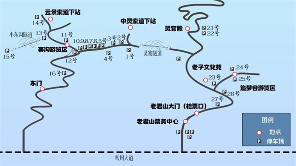 網(wǎng)上提前購票的游客到達景區(qū)無需下車,可開車通過檢票站,聽從工作人員指揮將車停放在索道周邊的停車場(停車場分布請看下圖)