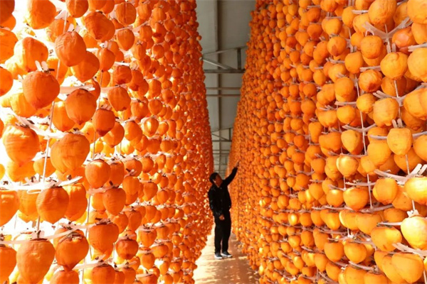 禹州市磨街鄉(xiāng)劉門村的村民在晾曬柿餅
