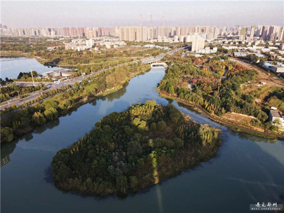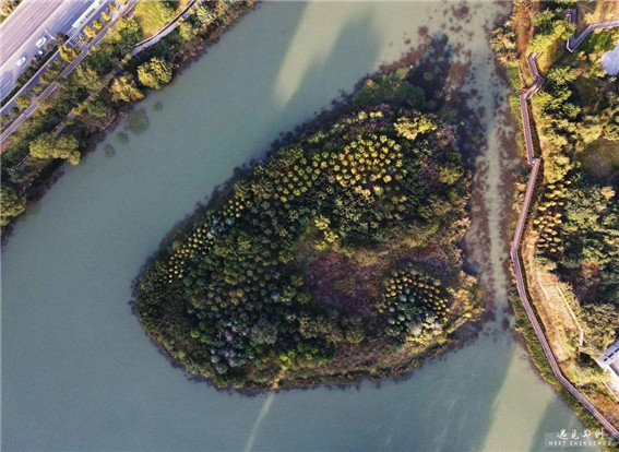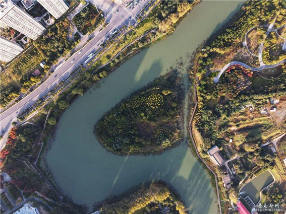 雖然已到深秋,但西流湖公園仍綠意盎然。