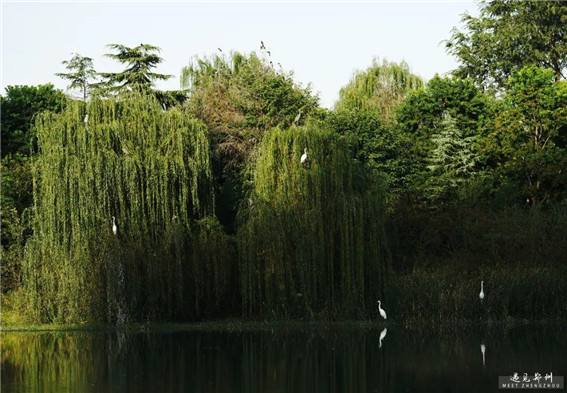 看,西流湖南側的小島上百鳥爭鳴,樹梢上不時有白鷺與蒼鷺追逐嬉戲。
