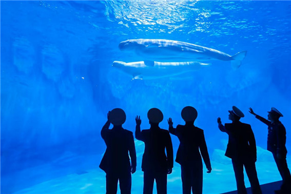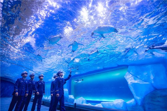 活動(dòng)當(dāng)天,身穿藍(lán)色制服的消防員們成了鄭州海昌海洋旅游度假區(qū)里最亮麗的風(fēng)景線,鄭州海昌超5萬(wàn)只的海洋極地動(dòng)物們也迎來(lái)了屬于“藍(lán)朋友”間的第一次會(huì)面。五彩繽紛的海洋極地世界,北極熊、白鯨、帝企鵝等品類(lèi)繁多的海洋極地動(dòng)物;夢(mèng)幻水母館、奇妙海洋館、海夢(mèng)秀場(chǎng)等不同主題的特色展館;國(guó)潮科技范兒十足的機(jī)甲陣隊(duì),都給“藍(lán)朋友”們留下了深刻的印象。