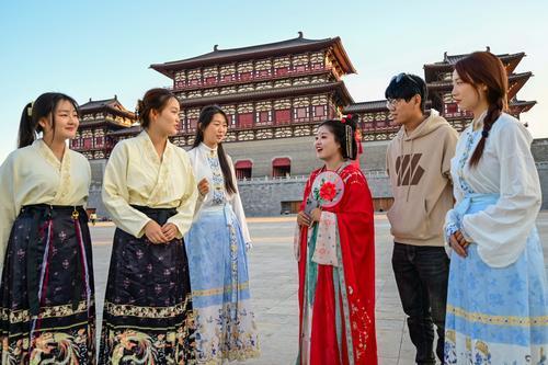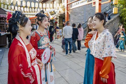 與游客互動(dòng),講解漢服文化。李衛(wèi)超 攝