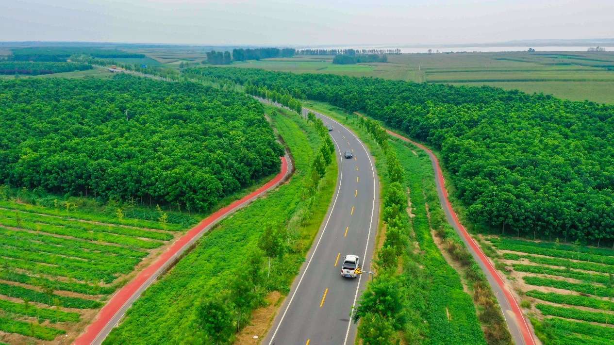 貫穿武陟縣黃河灘區(qū)的“四好農(nóng)村路”王園公路兩側(cè)的生態(tài)廊道。 王琳鋒 攝