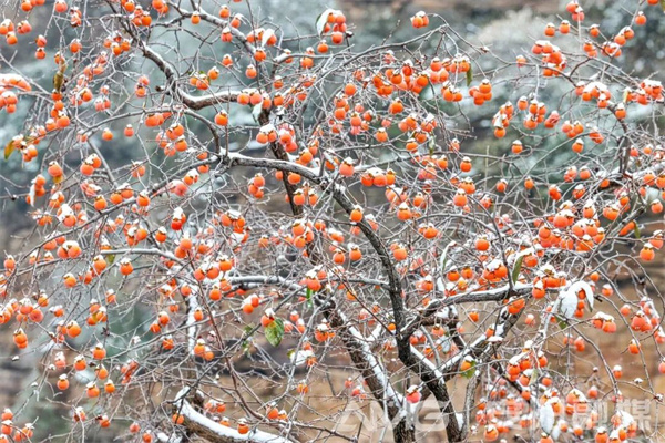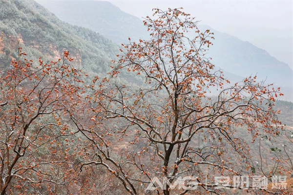 安陽林州太行山上的柿子樹,在經(jīng)歷入冬的第一場雪后,紅彤彤的柿子仍高傲地掛在遒勁的枝條上,密密匝匝地聚在一起,如火焰般熱烈,在寒風(fēng)中給人溫暖,如云霞般燦爛,在霜雪中給人力量。