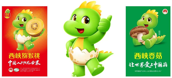 自左至右依次為西峽獼猴桃、西峽城市和西峽香菇區(qū)域公用品牌IP