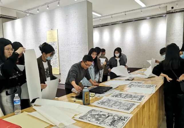 滑縣木版年畫(huà)國(guó)家級(jí)非遺代表性傳承人韓建峰在現(xiàn)場(chǎng)教學(xué)(資料圖)