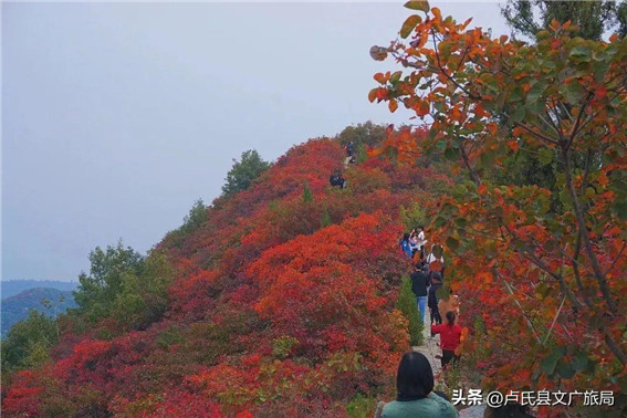 等到完全登頂?shù)哪且豢蹋硽璧撵F氣、連綿起伏的群山、萬山紅遍的壯麗景觀盡收眼底,古道蜿蜒在紅葉山水間,景色美不勝收,仿佛置身仙境,讓人沉思感嘆,不禁想到范仲淹的詩(shī)“碧云天,黃葉地,秋色連波,波上寒煙翠”里的模樣。