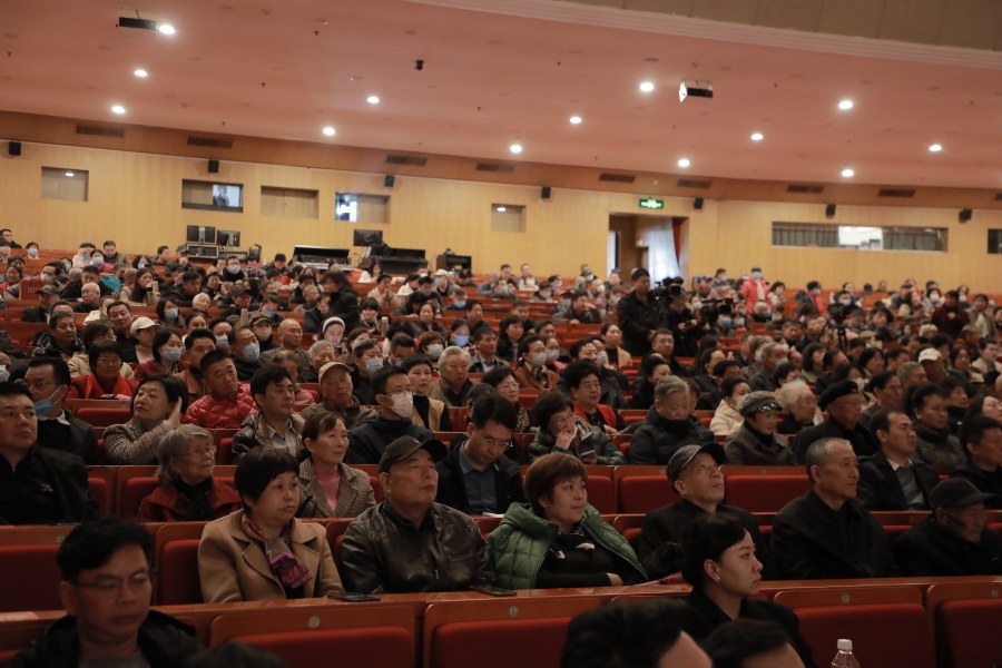 在放映過(guò)程中,觀眾們聚精會(huì)神,紛紛為演員們的精彩表演鼓掌叫好,為李樹(shù)建扮演的關(guān)羽“義”的精神感動(dòng)。