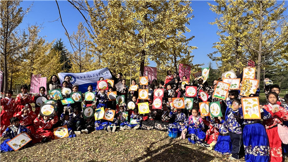 當(dāng)天,近百名小萌娃身穿飛魚服興致勃勃地走進(jìn)銀杏林,他們以地為席,在金燦燦的銀杏葉上,揮灑著自己的想象力。