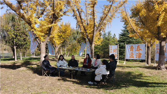 在本次露營圍爐雅集上,非遺唐三彩燒制技藝傳承人高艷峰、非遺剪紙傳承人李萍萍、非遺鐵謝李松羊肉湯傳承人李杰、非遺古陶制作技藝傳承人馬醒醒、非遺魚拓技藝傳承人李運(yùn)濤、平樂正骨非遺傳承人王惠穎、黃鹿山綠島度假中心負(fù)責(zé)人劉斐、孟津融媒體中心劉艷濤等,紛紛從各自的視角暢談孟津渡、慢生活、古風(fēng)、藝術(shù)、飲食等話題。