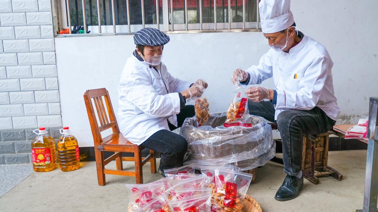 △楊勇與妻子敖福英一起炸制、包裝麻花 葉思明 攝