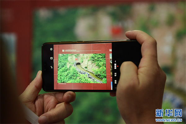11月21日,“紅旗渠精神巡展”活動(dòng)現(xiàn)場(chǎng),學(xué)生在拍攝展出作品。