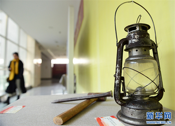 11月21日,“紅旗渠精神巡展”上展出的修建紅旗渠的工具。