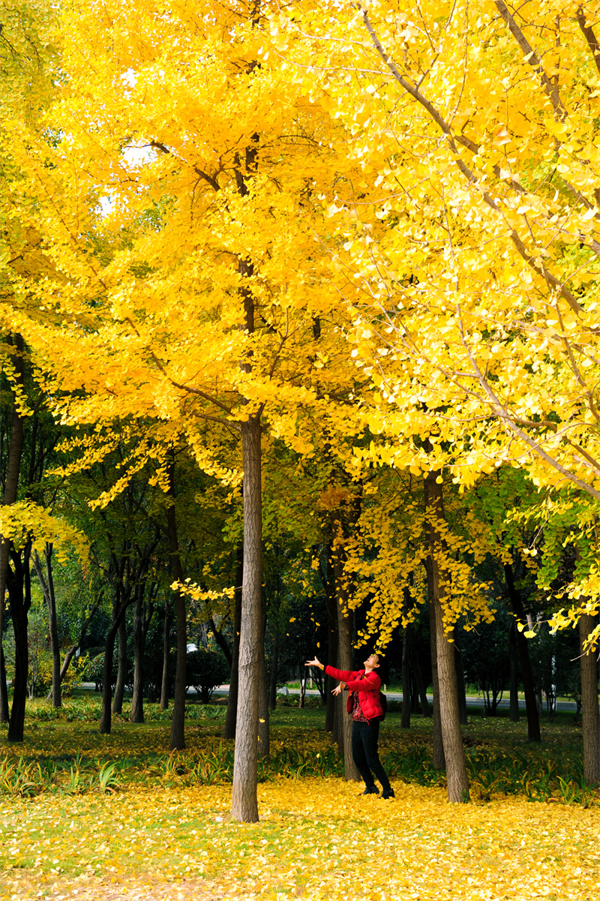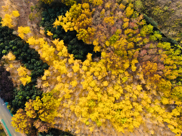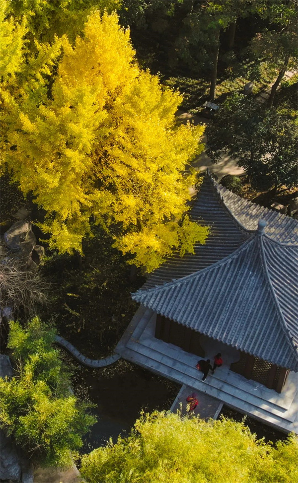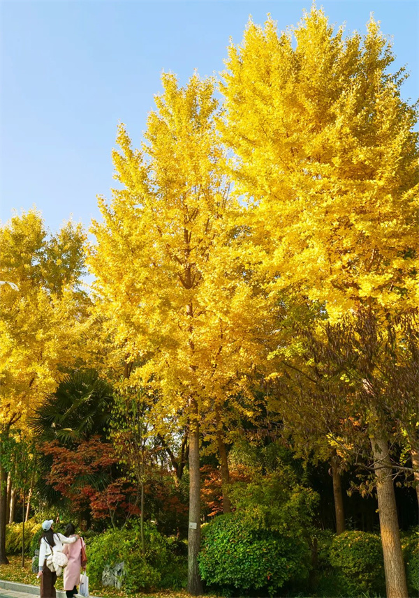 今年的銀杏黃葉“遲到了”