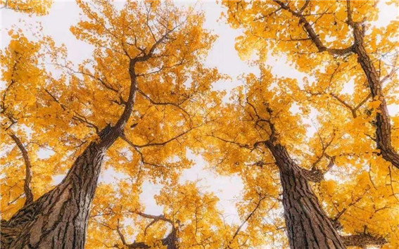 湛藍澄澈的天空顯得分外寧靜美好,金燦燦的銀杏點綴著藍天,真是這個季節(jié)最好看的顏色了。