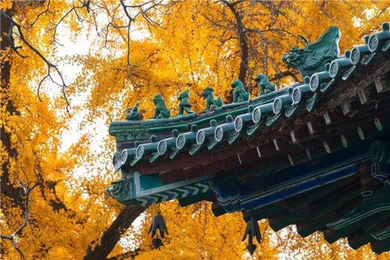 紅墻、青瓦、黃金葉、古剎、風來、鐘聲起……初冬,少林寺里的銀杏樹又迎來了它一年中最美的時節(jié),請享受來自初冬的每一幀。