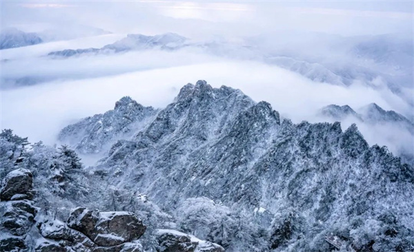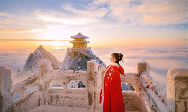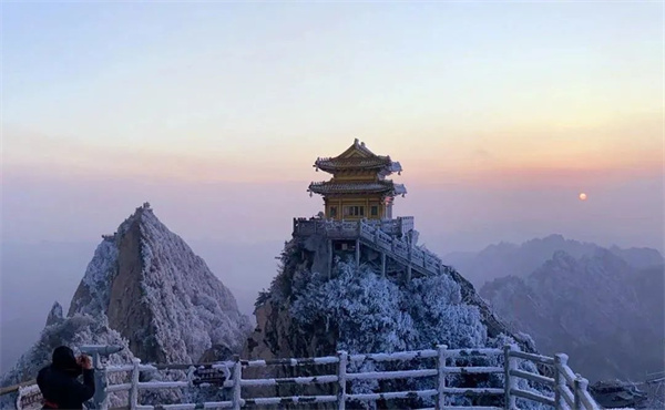 跟老君山的雪合個影吧,看云霧繚繞著群山,猶如人間仙境。