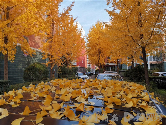 碰巧的是,11月25日晚周口迎來一場降雨,次日,被打落的銀杏葉鋪在地上、草叢中以及居民停放的汽車頂上,宛若一道金燦燦的地毯,盡顯初冬的蕭瑟之美。