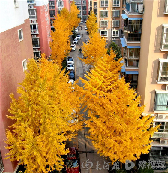 周口市的新聞花園小區(qū),又叫廣電欣苑小區(qū),位于慶豐街與府苑街交叉口東北角,小區(qū)建成距今大約13年時間了。小區(qū)內(nèi)有南北兩條主干道,兩側(cè)栽植著高大的銀杏樹。十年樹木、百年樹人,如今,當(dāng)初栽植的銀杏樹枝繁葉茂,有的蔓延到居民家的窗口。眼下,它們正用獨有的金黃色裝扮著冬天的美。