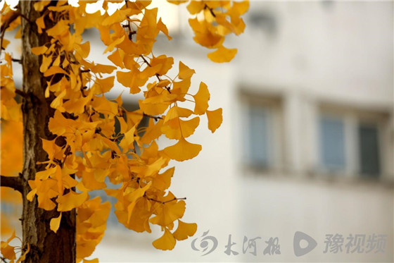11月26日,周日,太陽剛探出腦袋,金黃的銀杏葉上就散出透亮的光。剛從超市買菜回來的市民金月全,拎著購物袋邊走邊欣賞小區(qū)的風(fēng)景。連日來,在周口城鄉(xiāng)一體化示范區(qū)的新聞花園小區(qū),種植的大約100棵銀杏樹漸次金黃,居民們推窗即可見景,成為初冬時節(jié)的一道風(fēng)景線。