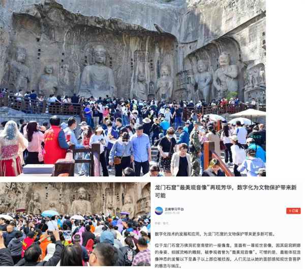 聚焦不止一次!11月18日,龍門石窟更是以一篇《龍門石窟“最美觀音像”再現(xiàn)芳華,數(shù)字化為文物保護帶來新可能》再度出圈,引發(fā)上海、安徽、廣東、四川、遼寧、甘肅、浙江、山東、河南等全國多個地市“學(xué)習(xí)強國”學(xué)習(xí)平臺關(guān)注與轉(zhuǎn)發(fā),強勢出圈!