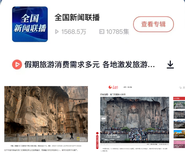 節(jié)點時期,龍門石窟則以短視頻交互式傳播和主流媒體合作等新傳播方式,創(chuàng)新傳統(tǒng)文化現(xiàn)代表達,今年十一期間花式喊話“游客注意安全”、創(chuàng)新項目夜游龍門、景區(qū)人流火爆、與NPC白居易吟詩作對的視頻接連火爆出圈,部分宣傳覆蓋央視、央廣、新華社、人民網(wǎng)四大頂級媒體、全國多家主流媒體網(wǎng)站、多地衛(wèi)視,鋪開傳播新路子。