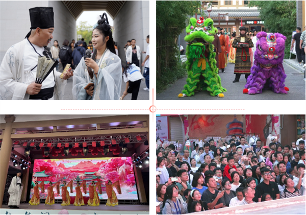 今年十一假期期間,龍門古街上演“龍門首焉·白居易”行進式演繹活動,每天吸引近4萬名游客觀看互動,游客在觀看大唐舞獅、巡游慶典、演繹雜耍、詩詞互動等系列配套節(jié)目的同時,沉浸式體驗一代詩人的龍門歲月,感受豪邁的盛唐氣象。