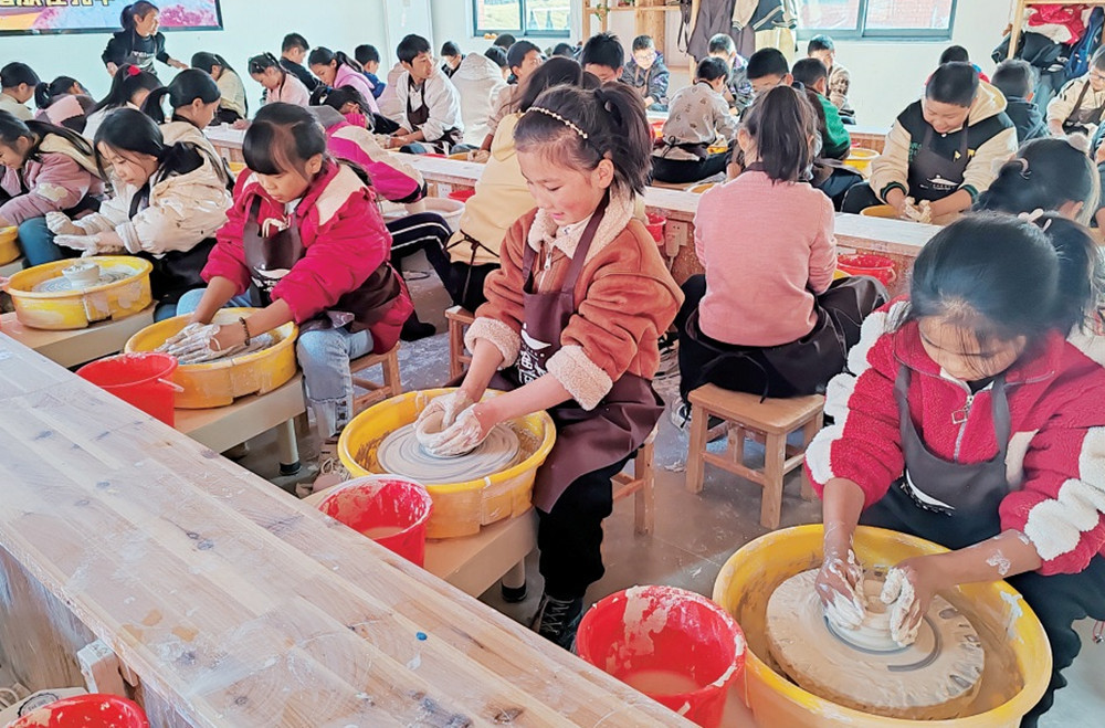 用一口窯,興一方產(chǎn)業(yè),富一方百姓。事實上,新建的不只是一座新龍窯。為傳承傳統(tǒng)的制陶技藝和保護這千年陶瓷村落,由商城縣政府平臺公司、雙椿鋪鎮(zhèn)振農(nóng)城鄉(xiāng)建設(shè)發(fā)展有限公司、浙江禮樂創(chuàng)意文化有限公司三方合營的河南省郭窯文化創(chuàng)意有限公司成立,規(guī)劃建設(shè)了涵蓋老龍窯舊址保護區(qū)、新龍窯、國家級陶瓷大師工作室、老藝人傳統(tǒng)制陶工作室、陶藝創(chuàng)作中心、產(chǎn)品擺放區(qū)、游客集散中心、鄉(xiāng)村陶瓷藝術(shù)館、研學(xué)基地、產(chǎn)品展銷中心、露營基地、考古基地和陶土保護區(qū)。2023年4月剛啟動建設(shè),就成了遠(yuǎn)近聞名的網(wǎng)紅打卡地,特別是郭窯紅陶柴燒新窯迎來首次試燒開窯后,慕名而來的游客絡(luò)繹不絕。據(jù)不完全統(tǒng)計,2022年11月至今,郭窯村已經(jīng)累計接待旅客近40萬人次、學(xué)生研學(xué)4000余人次,創(chuàng)收510多萬元,還帶動了280多名村民在家門口就業(yè)。