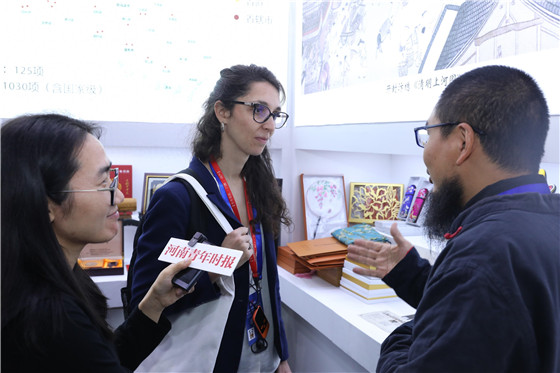 她來(lái)中國(guó)已有三年,是法國(guó)知識(shí)產(chǎn)權(quán)局的駐華代表,致力于中國(guó)知識(shí)產(chǎn)權(quán)制度研究。在河南展館,魏玉立參觀了甲骨文文創(chuàng)、州橋遺址文創(chuàng)等特色版權(quán)作品,來(lái)到淮陽(yáng)泥泥狗展位時(shí),河南省第五批省級(jí)非物質(zhì)文化遺產(chǎn)代表性傳承人邵波為她講述了泥泥狗背后的神話故事和獨(dú)有的中華傳統(tǒng)文化。