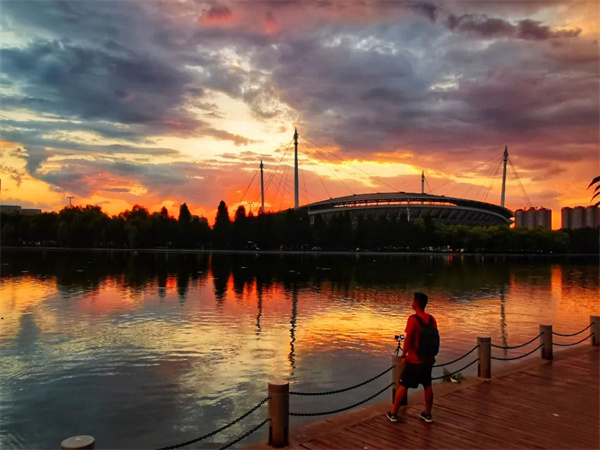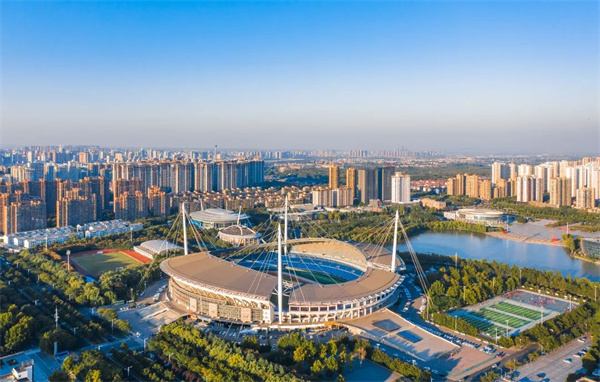洛陽(yáng)新區(qū)體育場(chǎng)位于新區(qū)開元大道人工湖西側(cè),充分顯示了體育建筑的力與美。