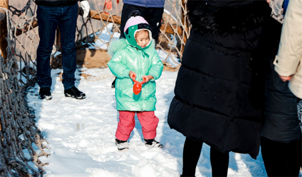 在雪花和好友的陪伴下
