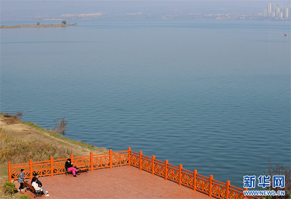11月26日,洛陽市孟津區(qū)黃河生態(tài)廊道,游客在拍照。