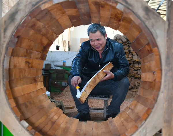喬家鼓坊的制鼓藝人在制鼓 董蕾 攝