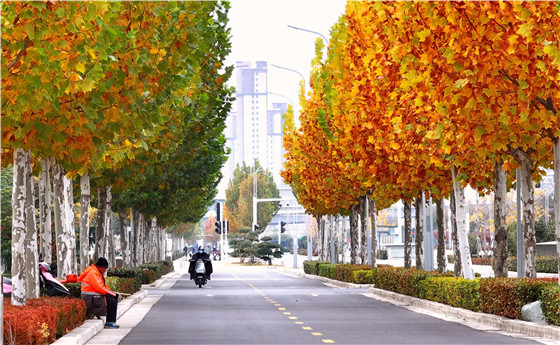 丹水大道兩側(cè)的法桐,青綠和金黃交相輝映。 鄭報(bào)全媒體記者 馬健 攝