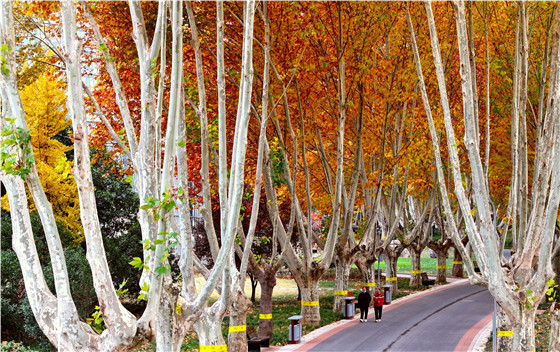 鄭州植物園的法桐滿樹金黃 鄭報(bào)全媒體記者 馬健 攝