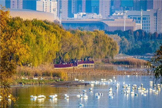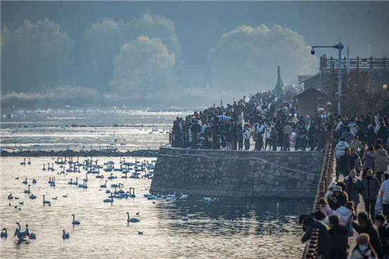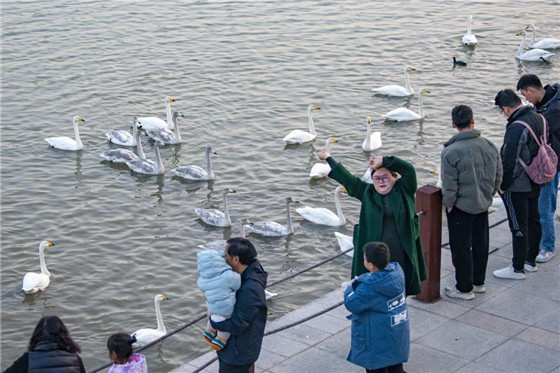 連日來,三門峽市天鵝湖國家城市濕地公園車水馬龍,游人如織,來自全國各地的游客來到這里觀賞大天鵝。