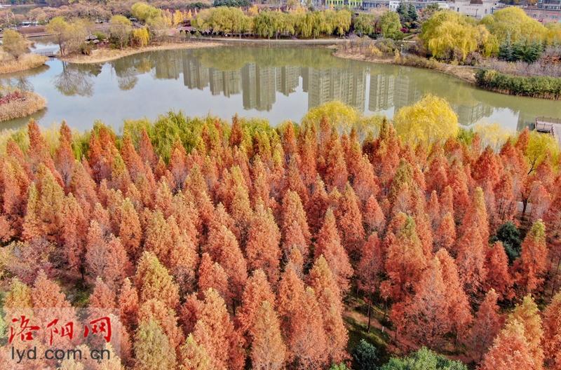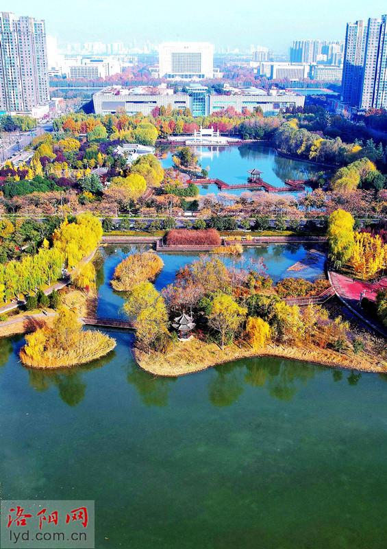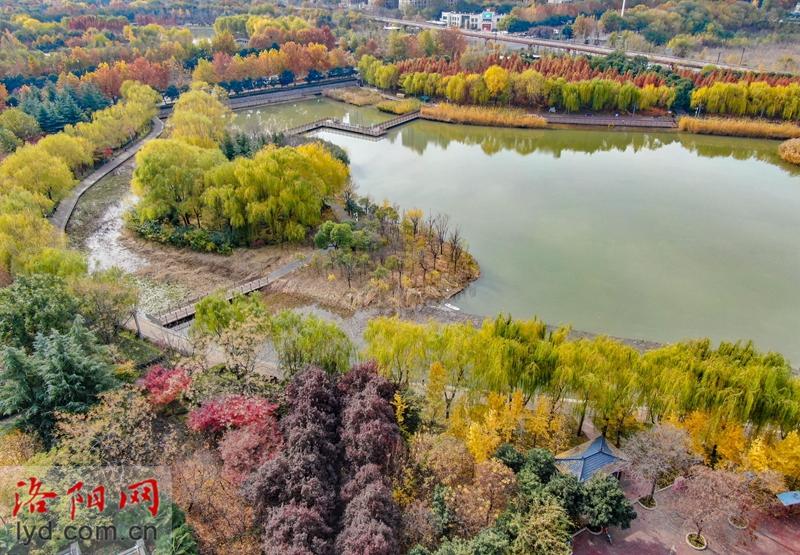 初冬時節(jié),洛陽市各大公園色彩斑斕,風景如畫。游人徜徉其間,感受生態(tài)之美。