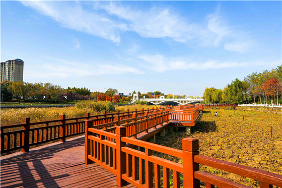 圖為河南鄭州航空港區(qū)梅河公園附近的秋冬景象。 徐聰 攝