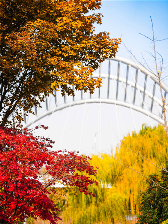 走在景觀橋上,盡情感受冬天的氣息吧。 徐聰 攝