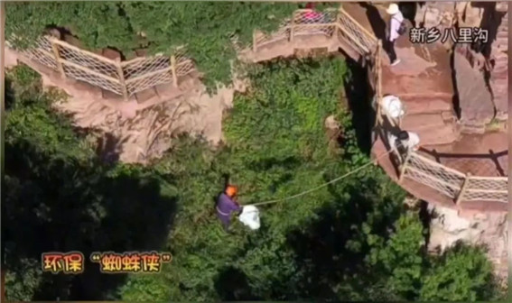 八里溝景區(qū)通過持續(xù)開展“綠色銀行”垃圾兌換活動、“蜘蛛俠”懸崖峭壁撿垃圾文明引導(dǎo)活動,大力倡導(dǎo)文明旅游,引導(dǎo)游客把文明理念內(nèi)化于心、外化于行。