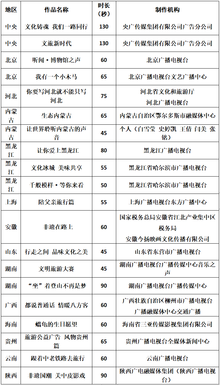 ——第三屆全國旅游公益廣告作品優(yōu)秀作品名單——