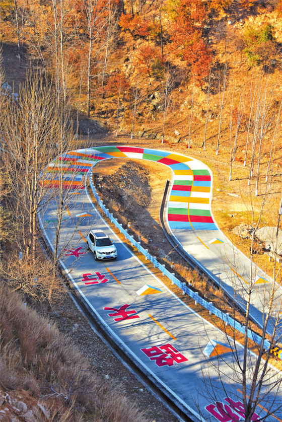 太行天路一號(hào)旅游公路濟(jì)源水洪池段,車(chē)輛穿行其中,猶如畫(huà)卷。