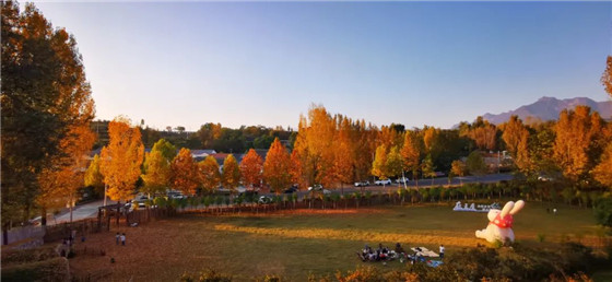 如果說(shuō)棕色系是,“美拉德”調(diào)色盤(pán)的底色,那么銀杏黃就是,陽(yáng)光下最絢爛的那一抹“高光”,青青草地與斑斕彩葉相映成趣,讓世紀(jì)廣場(chǎng)充滿了詩(shī)情畫(huà)意。