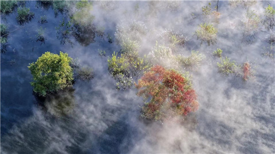湖面披上了一層“薄紗” 徐生祥 攝