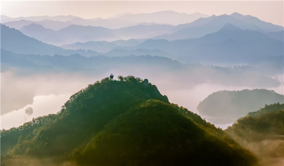 山湖相映,霧氣飄渺。 徐生祥 攝