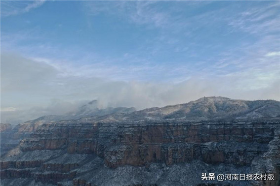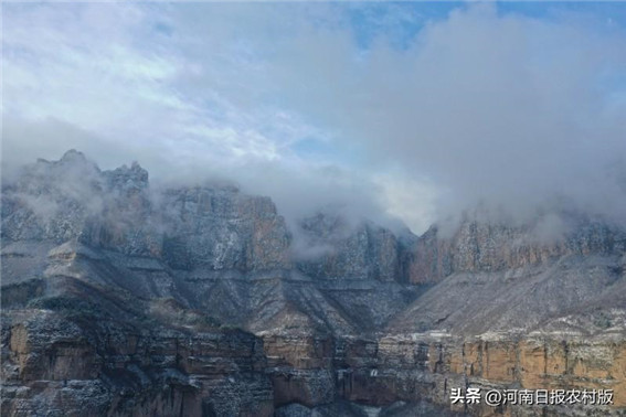 受冷空氣影響,12月10日,河南安陽(yáng)市林州太行大峽谷出現(xiàn)了大范圍的降雪天氣,大雪給冬日的太行大峽谷披上了美麗的“銀裝”,積雪與群山相映成趣,整個(gè)太行大峽谷都覆蓋在皚皚白雪之下,流露出安然素美的意境,勾勒出一幅朦朧的雪景畫卷,令人嘆為觀止。