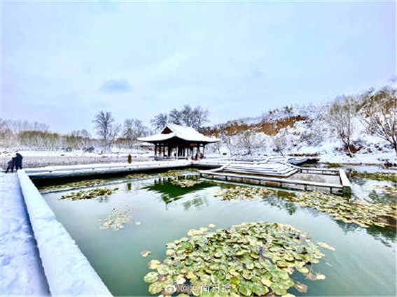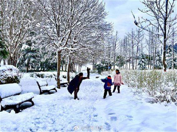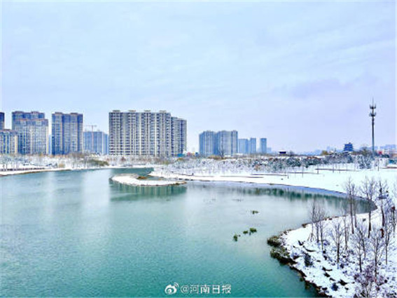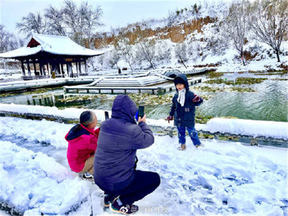 12月11日,鄭州市西流湖公園銀裝素裹,水墨畫般的景色吸引市民前來拍照欣賞,孩子們在雪地里打雪仗、滑雪橇、堆雪人,為寒冷的冬日增加了一份快樂與活潑。