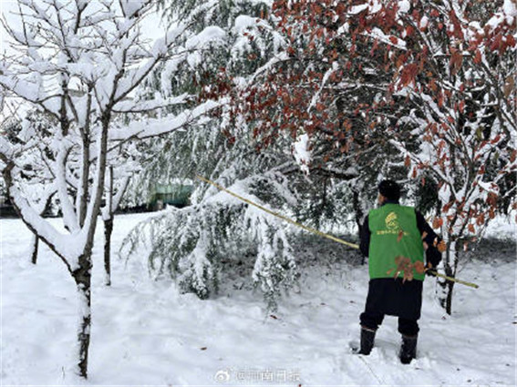 為保障市民游客安全出行,西流湖公園干部職工早上七點(diǎn)開始掃雪除冰工作,共出動(dòng)一線清雪人員150人次,出動(dòng)運(yùn)輸車輛、掃雪鏟、掃把等400余次,確保了行人出行安全。